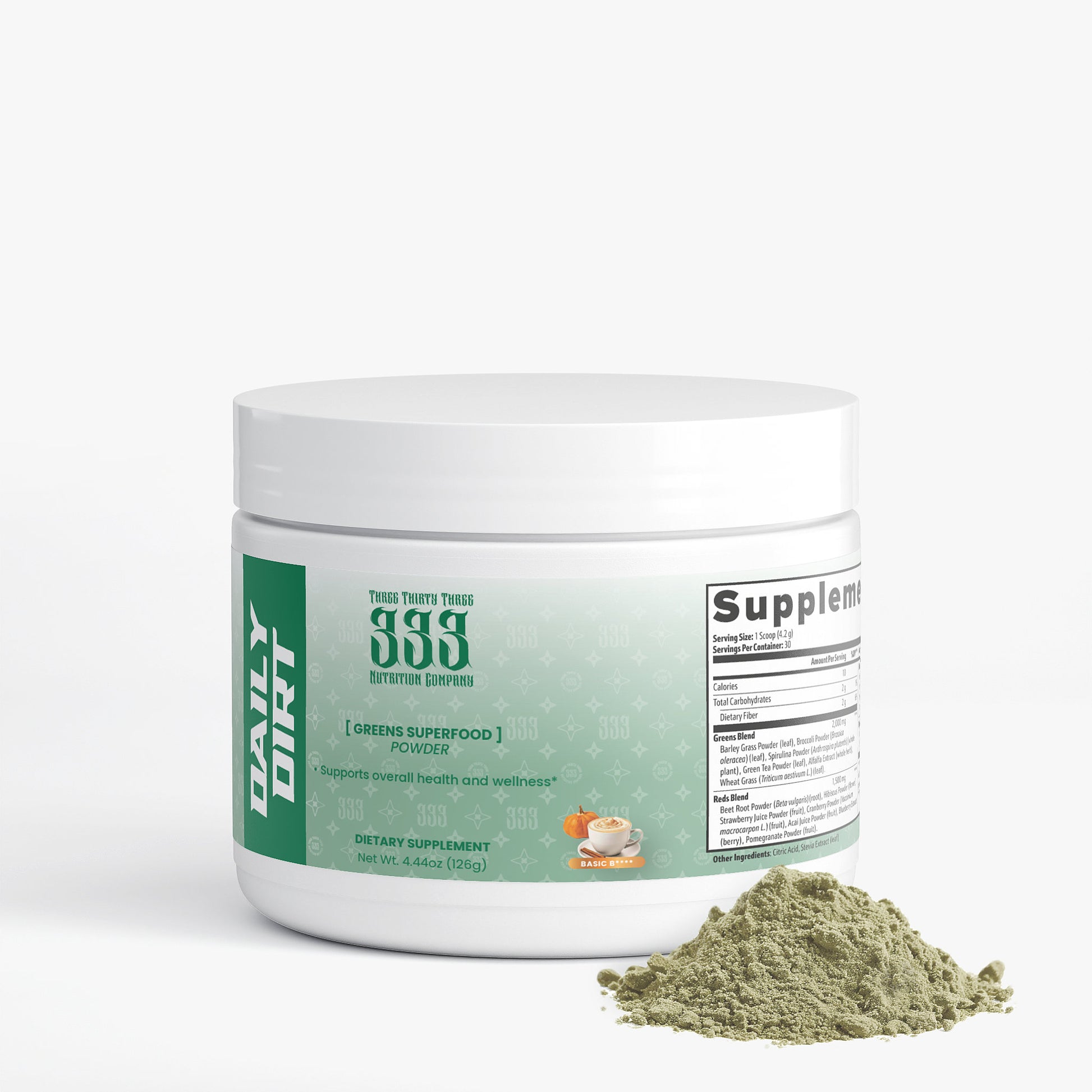 "DAILY DIRT" is your daily dose of inner balance. Crafted from a nutrient-dense blend of greens to elevate digestion, reduce bloat, and supercharge absorption. This superfood powder is designed to support your body’s natural detox, enhance vitality, and help you feel lighter, clearer, and ready to conquer whatever comes next.