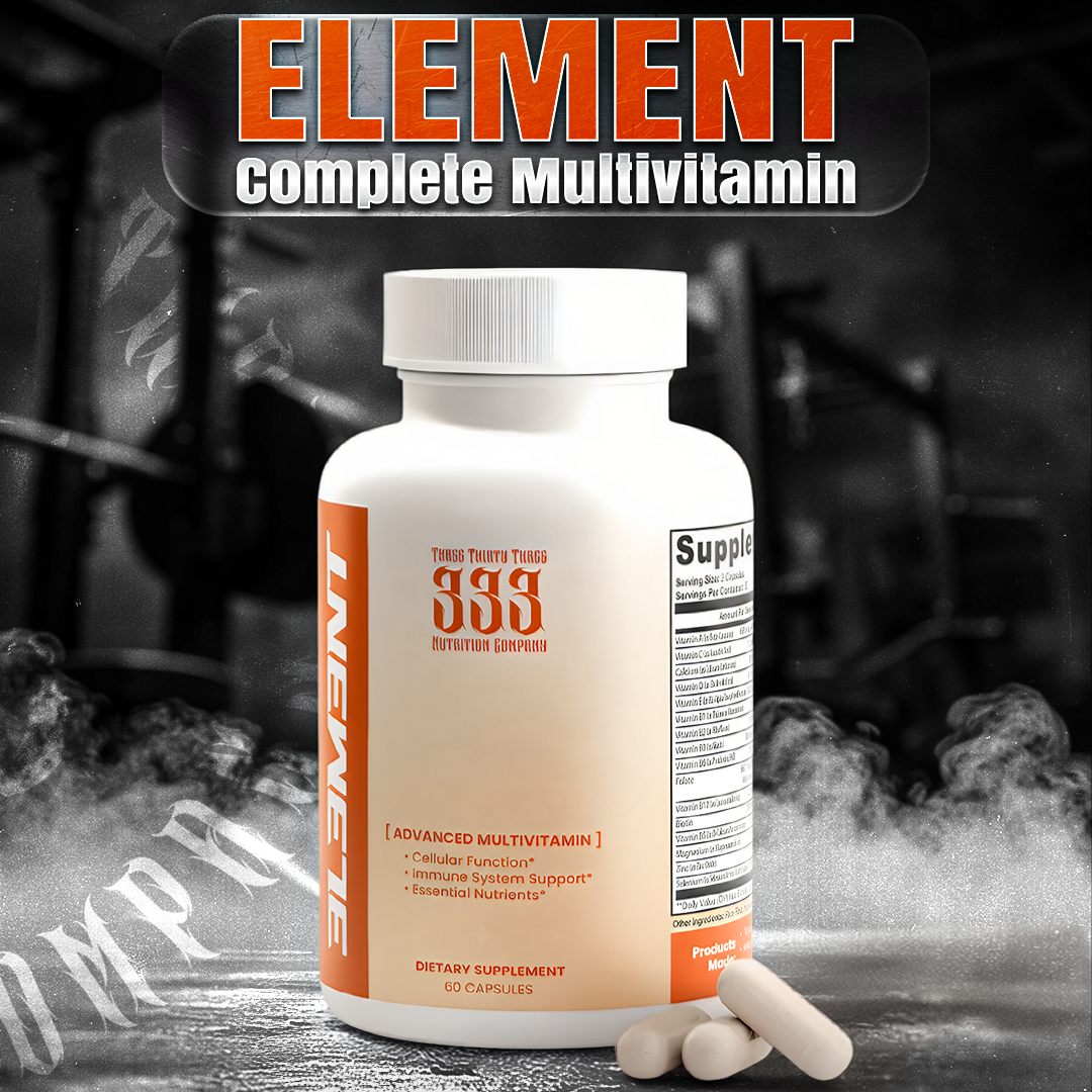 "ELEMENT" is the essential formula for foundational strength. Packed with critical vitamins and minerals to power your body from the inside out. Designed to support immune health, energy metabolism, and cellular function, it’s your go-to daily multivitamin for sustained performance.