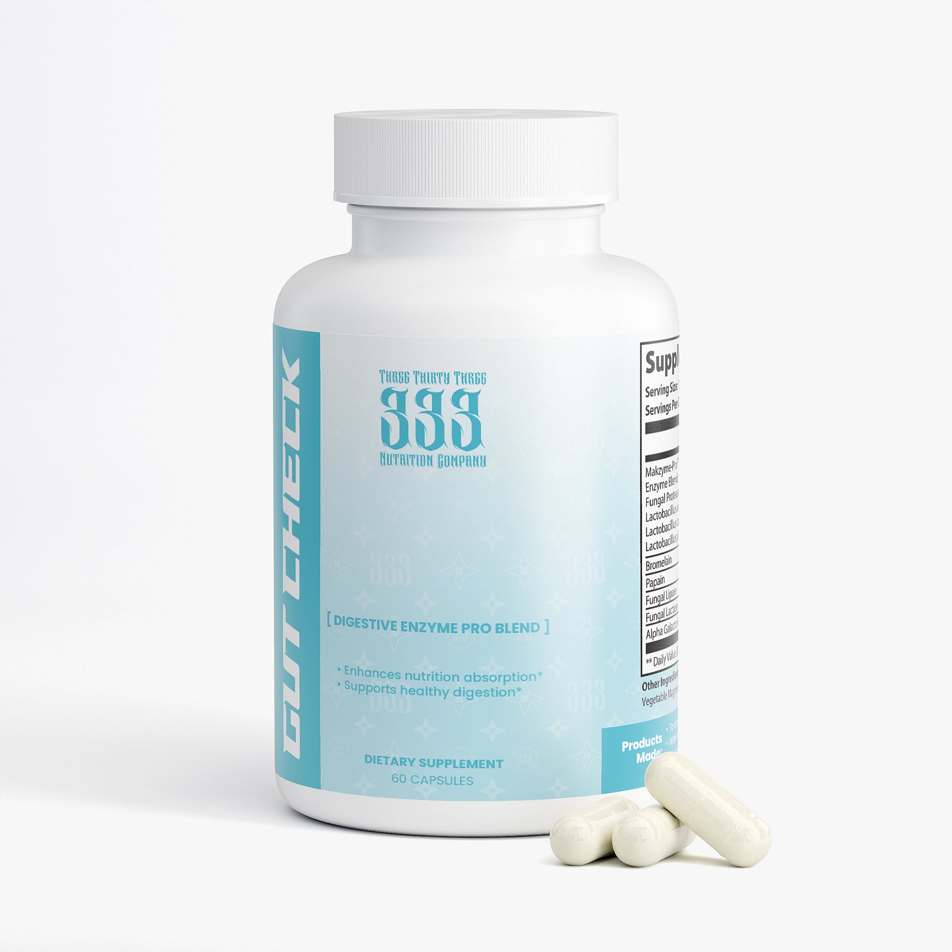 "GUT CHECK" is the inner fuel fix. Designed to optimize digestion, improve nutrient uptake, and support whole-body energy. Built with a Pro Enzyme Blend, this formula keeps your gut in check so your gains aren't just earned, they're absorbed.